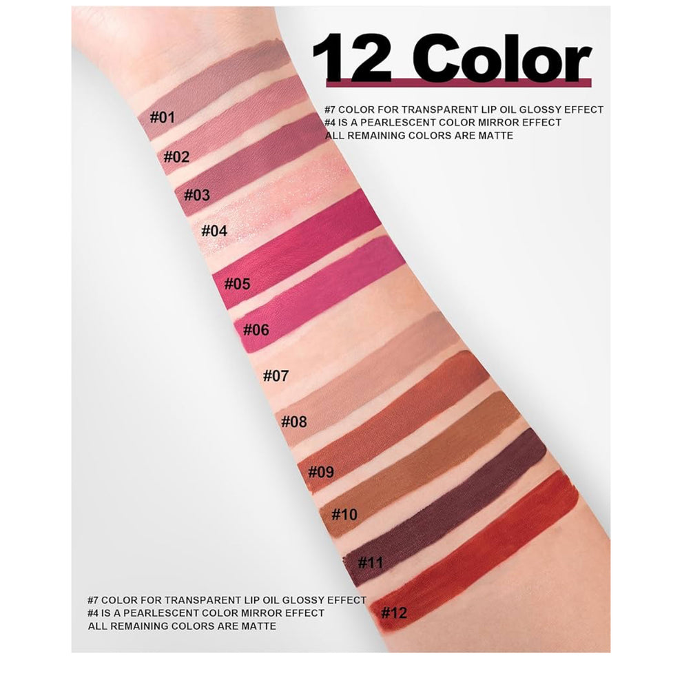 Introducing the handaiyan Lipstick Set of 12, an essential collection for every makeup enthusiast. This set features a range of stunning shades designed to elevate your lip look. Each handaiyan lipstick is formulated to deliver a long-lasting and non-stick matte finish. The liquid matte formula glides smoothly on your lips, providing intense pigmentation that stays vibrant throughout the day. Waterproof and transfer-proof, these lipsticks ensure your color remains intact, no matter the occasion. With 12 captivating colors, you have endless options to explore and express your personal style. From bold and vibrant to subtle and sophisticated, there’s a shade to suit every mood and look. Whether you’re getting ready for a glamorous night out or a casual day at the office, this versatile lipstick set is perfect. In addition to a beautiful matte finish, these lipsticks include hydrating ingredients to help keep your lips feeling comfortable and looking their best.